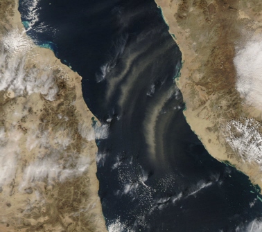 Dust plumes blow off the coast of Saudi Arabia and over the Red Sea in this Aqua satellite image taken on January 16. The spacecraft's MODIS instrument captured the view on the second day of dust activity. Aqua was launched from California's Vandenberg AFB in 2002. Image courtesy Jeff Schmaltz, MODIS Land Rapid Response Team, NASA GSFC