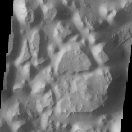 The THEMIS instrument on the Mars Odyssey spacecraft imaged complex terrain in the Red Planet's Iani Chaos region. The original image had a resolution of 18 meters (about 55 feet) and was centered on -0.8° N, 343.7° E. THEMIS is controlled and operated from the Arizona State University campus in Tempe, Arizona. Image Credit: NASA/JPL/ASU